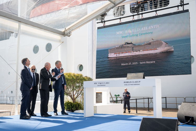 La troisième célébration organisée par MSC Cruises et Chantiers de l’Atlantique fut la cérémonie de découpe de la première tôle, marquant le lancement officiel de la construction du quatrième navire de la classe World, dont le nom a été révélé à cette occasion : MSC World Atlantic. Ce navire sera déployé dans les Caraïbes au départ de Port Canaveral (États-Unis), à compter de l’hiver 2027-2028.
